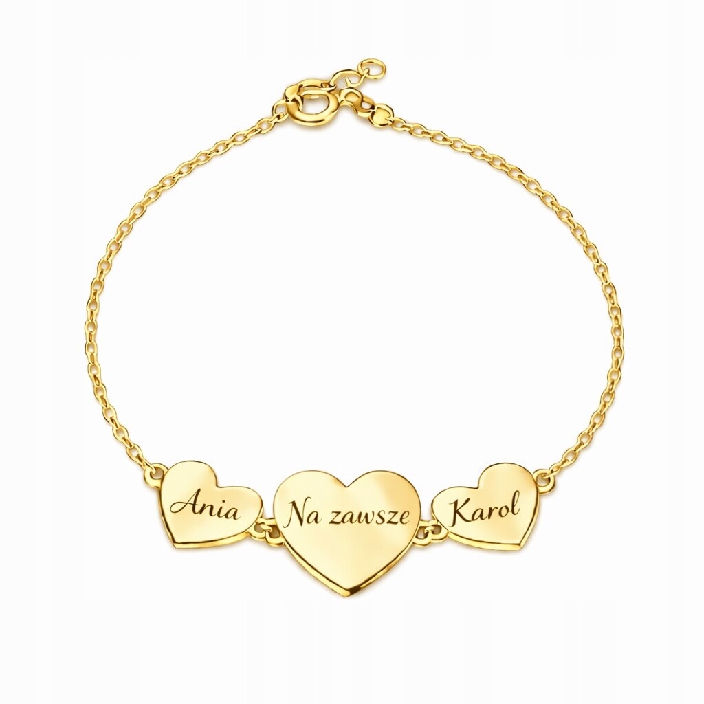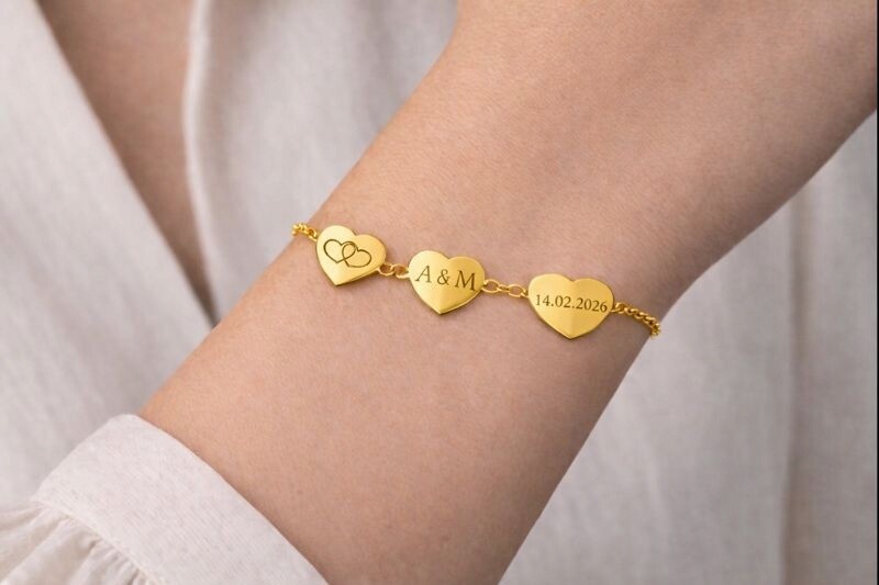 Ta delikatna bransoletka z trzema serduszkami ❤️ to wyjątkowa pamiątka miłości, bliskości i wspólnych chwil. Dzięki personalizacji staje się jedyna na świecie — dokładnie taka, jak Wasza historia.
