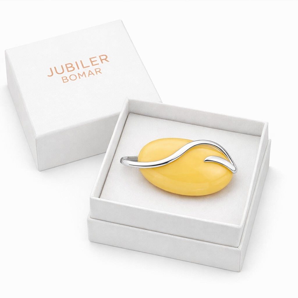 Broszka srebrna z naturalnym mlecznym bursztynem – elegancki prezent z klasą BR4