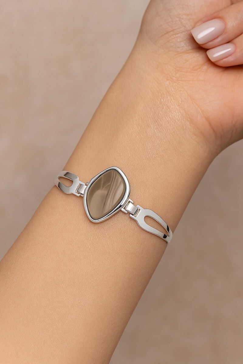 ✅Elegancka, „zegarkowa” forma z dekoracyjnym wycięciem pięknie układa się na nadgarstku i podkreśla jego smukłość. Uniwersalna kolorystyka sprawia, że bransoletka pasuje zarówno do codziennych stylizacji, jak i wieczorowych kreacji.