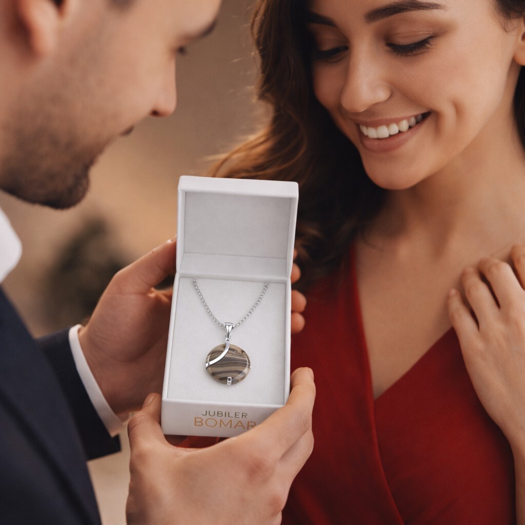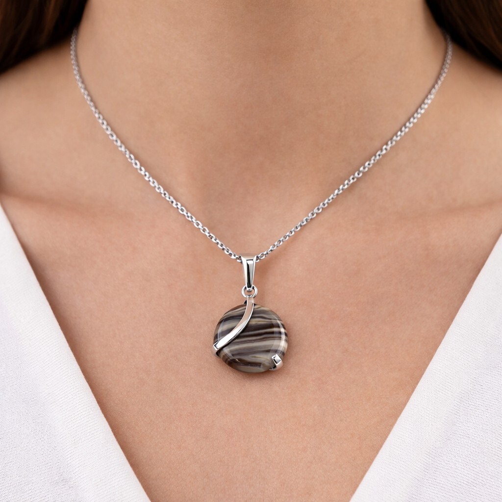 Srebrna zawieszka z naturalnym krzemieniem pasiastym – wyjątkowy prezent z duszą.