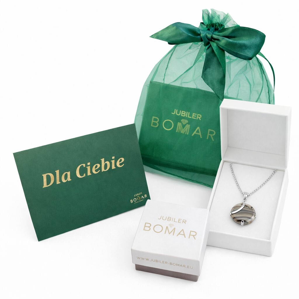 Ta srebrna zawieszka próby 925 z naturalnym krzemieniem pasiastym to biżuteria, która zachwyca nie tylko wyglądem, ale też znaczeniem.