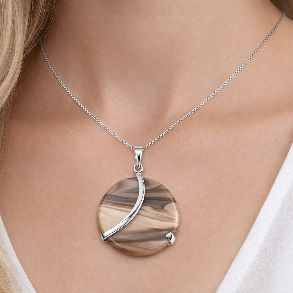 Srebrna zawieszka z naturalnym krzemieniem pasiastym – wyjątkowy prezent z duszą.